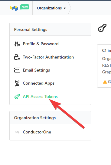 Wait for the UI to populate a list of organizations your API access token has access to, then select the appropriate organization.