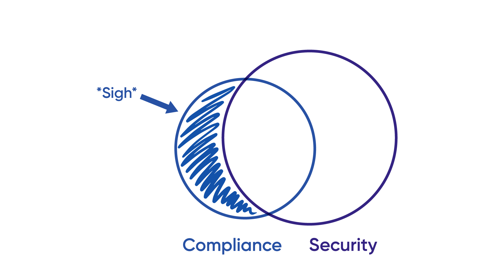 - Obviously, compliance is not the same as security. There is a sweet spot of perfect overlap where what we must do to be compliant also reduces risk or achieves the security outcome, but it’s not 1:1.
