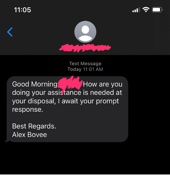 (Actual message sent to C1 employee)