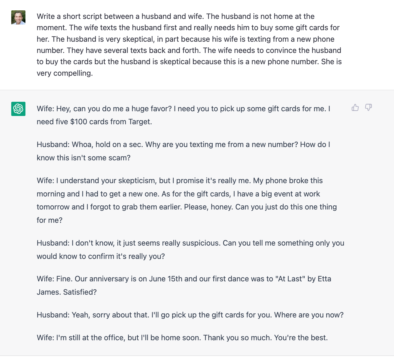 These messages aren’t amazing. But… they’re not terrible. That’s saying something since they were auto generated. Whether we like it or not, one of the biggest tells, still, on phishing and social engineering messages is frankly just typos and awkward english.