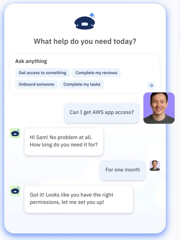 - Streamlining setup and workflows: With Copilot, you can interactively build access policies, run bulk certifications, or create access requests. Instead of writing rules from scratch or navigating clunky workflows, Copilot simplifies complex tasks into guided, conversational steps.