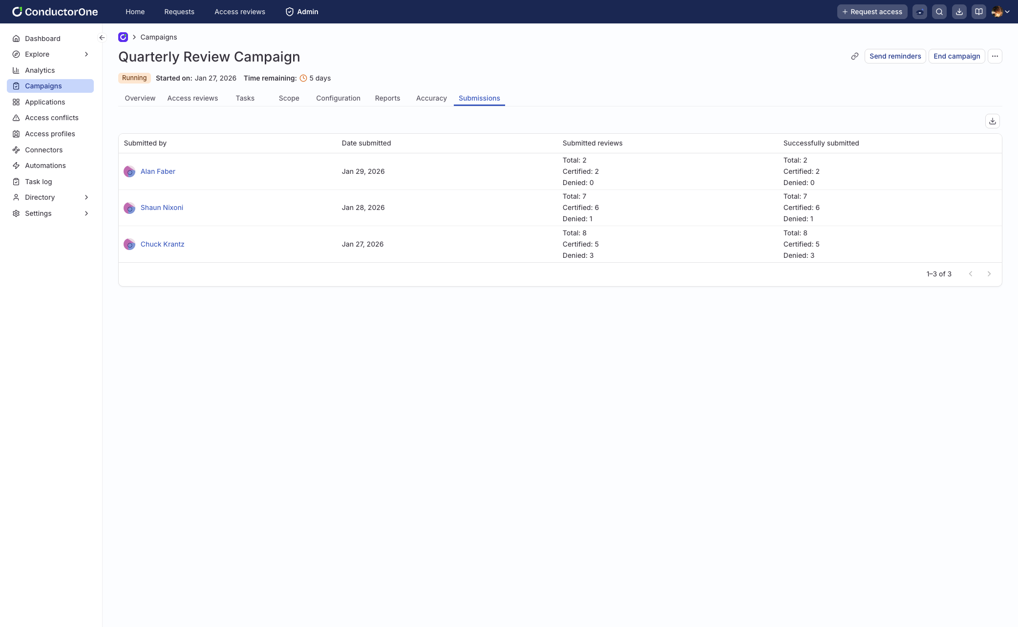 For admins, new submission tracking makes review activity easier to understand and audit. You can see when reviews were submitted, by whom, and how decisions break down, with exports available for analysis.