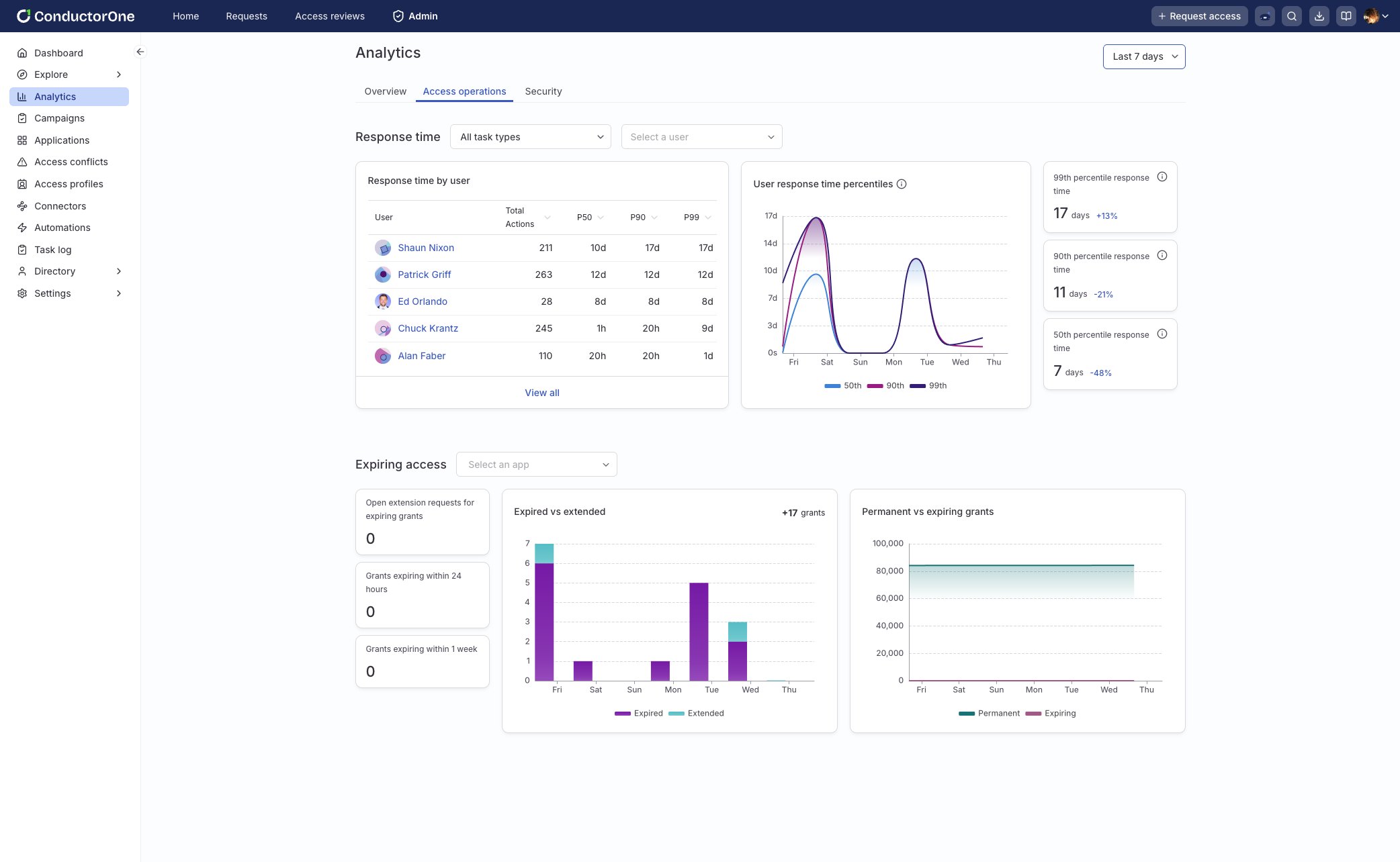 January brought meaningful enhancements to the access operations dashboard. You can now export key metrics, track expiring grants and extension requests, and analyze response times across users and workflows. New percentile-based views make it easier to spot bottlenecks and understand approval behavior beyond simple averages.