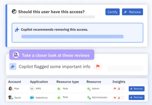 **Feature highlight →**C1’s Access Copilot uses AI to give risk-based recommendations that guide approvers. Along with the JIT access request, approvers can see the user’s past access patterns, behaviors, compliance tags, and more.
