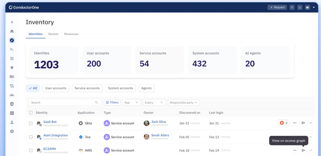 As your infrastructure grows, so do your service accounts, bots, and API keys. Most frameworks ignore these, but C1 treats them as first-class citizens.