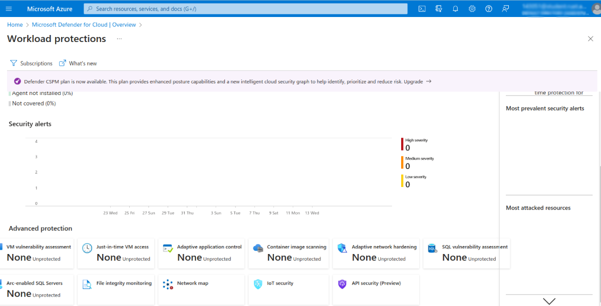 You can access Defender for Cloud through the Azure services list or by finding it using the search bar. Once there, navigate to Cloud Security > Workload protections, then click the Advanced protection > Just-in-time VM access option:
