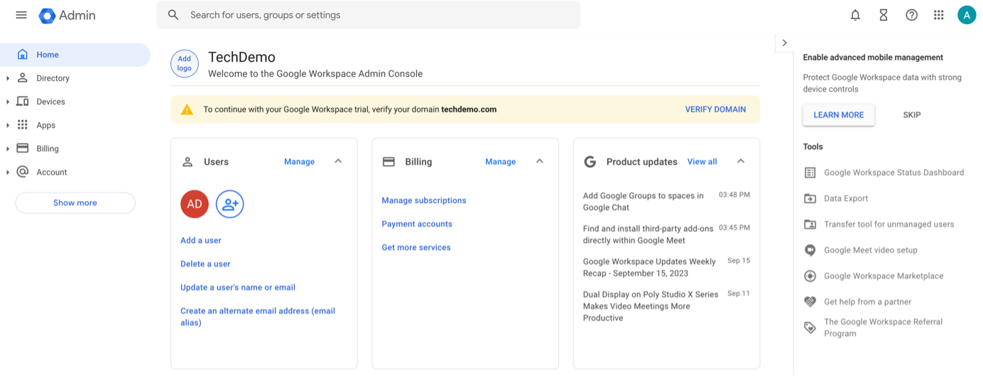Start by signing in with a super admin user account in the Google Admin console.