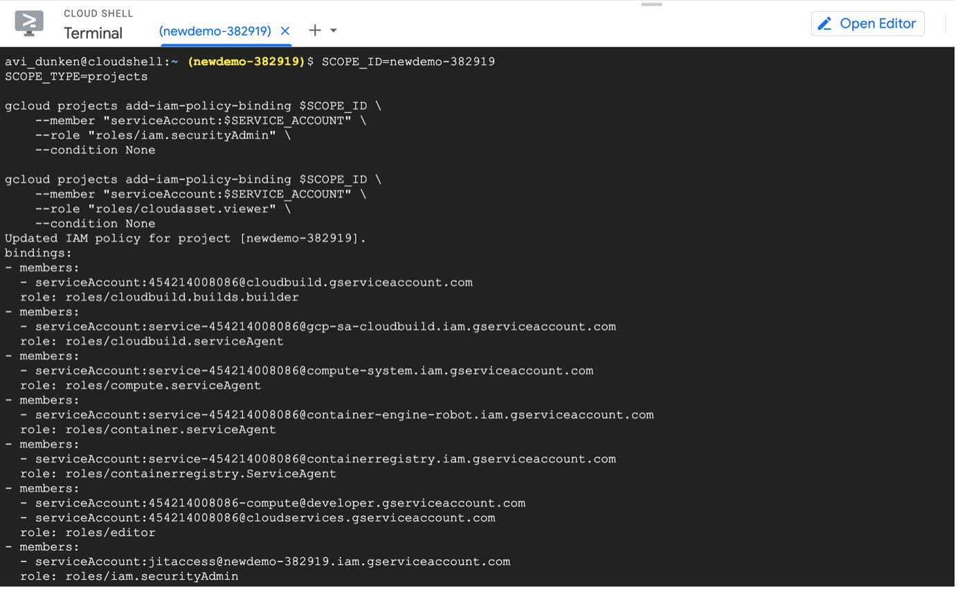 Once you’ve completed the above step, you will have successfully granted the JIT Access application permission to manage IAM bindings in Cloud Shell.