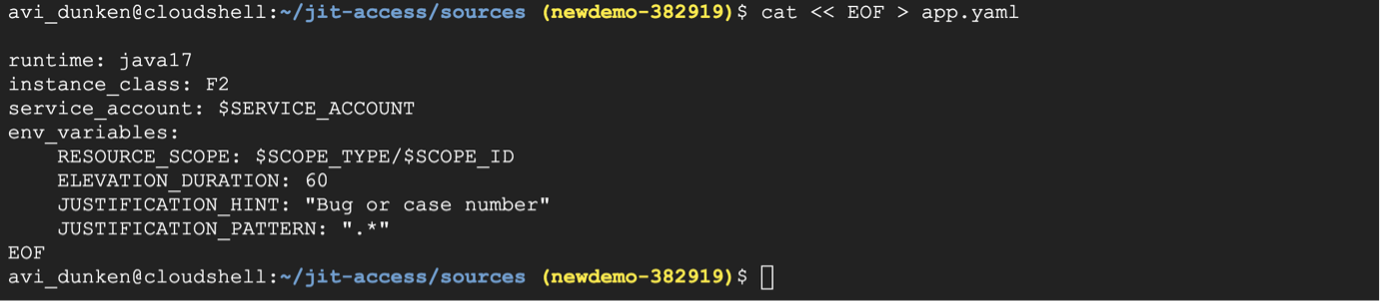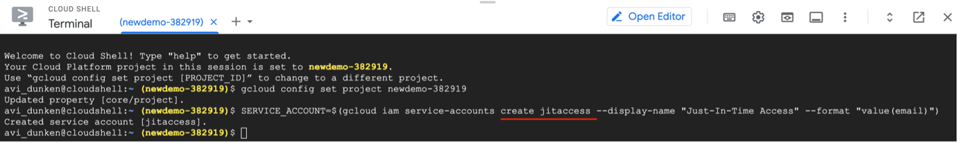 SERVICE\_ACCOUNT=$(gcloud iam service-accounts create jitaccess
