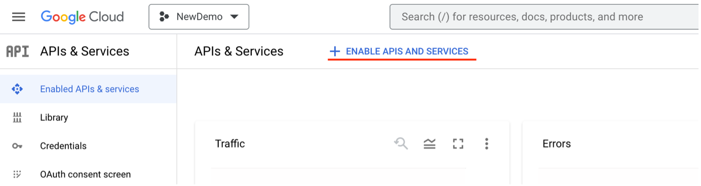 Click ENABLE APIS AND SERVICES:
