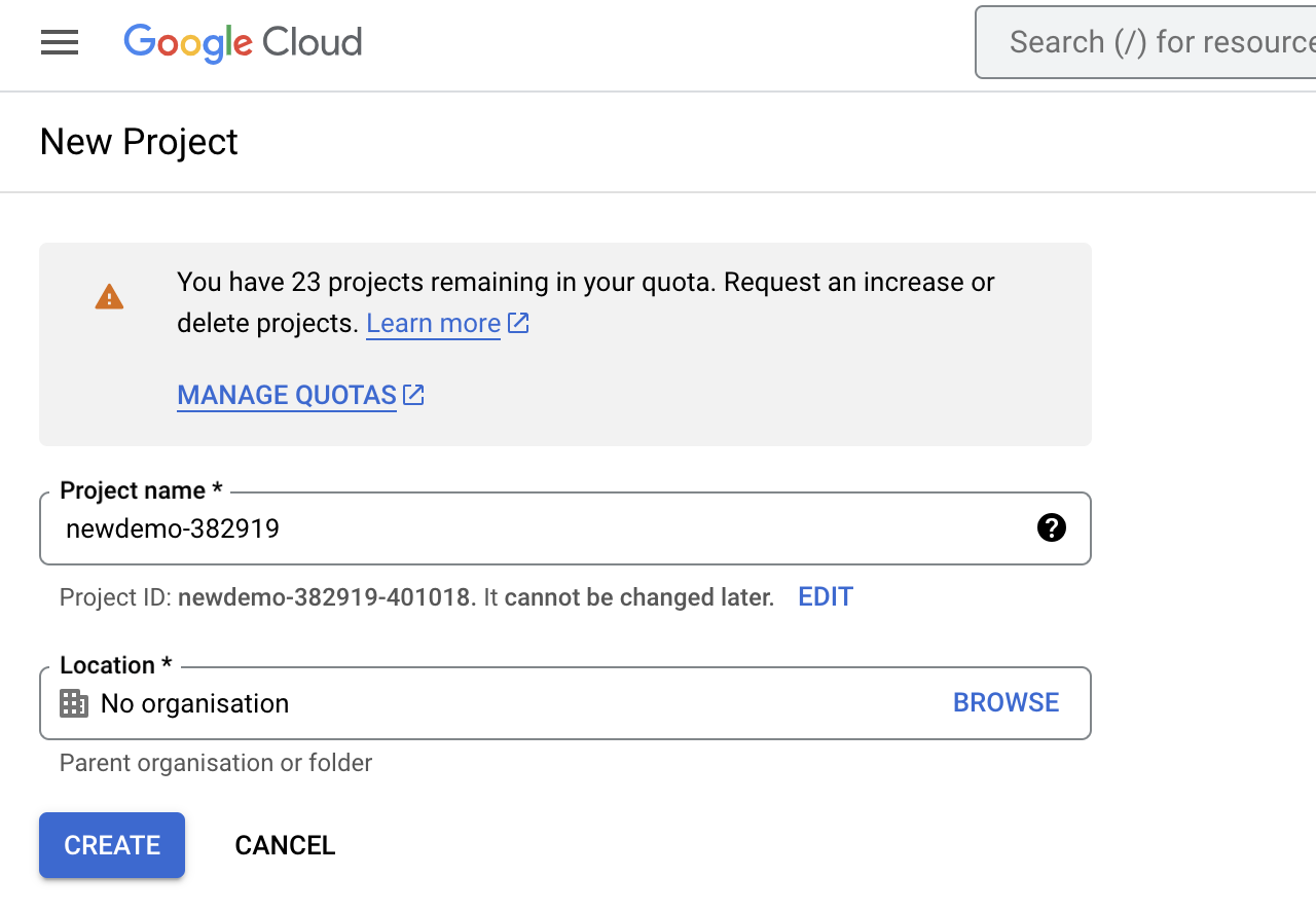 Before creating a service account, you’ll need to create a new project if you don’t already have one.