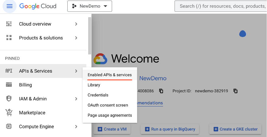 Go to the APIs & Services > Enabled APIs & services page in the GCP console: