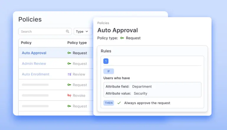 - Policy-driven access controls: Different identity types can follow different rules. Contractors might require sponsor sign-off before any access is granted, while vendors might face stricter approval chains for sensitive systems.
