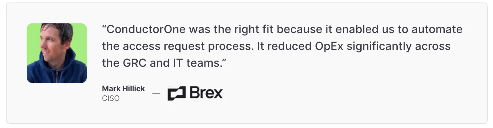 Brex took a similar approach when they integrated C1 with Okta to manage access as code through Terraform. They automated 50,000 access requests and cut operational costs across their GRC and IT teams.