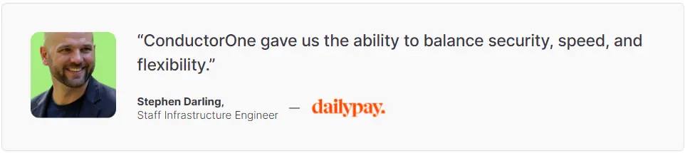 Organizations replacing manual processes see the difference right away. DailyPay ** ** was drowning in 300 monthly AWS access request tickets before deploying C1's JIT access and Terraform integration, which saved them 20 hours per month.