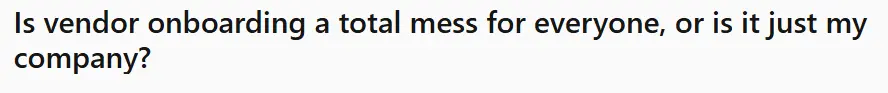And if you've ever felt like vendor onboarding is chaotic in your org, you're not alone. Questions like this are especially common on Reddit: