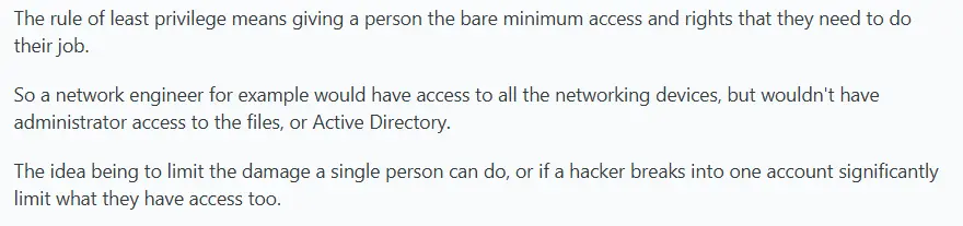 Least privilege means that third-party users should only have access to what's necessary for their work. This user on Reddit gave a great explanation on the topic: