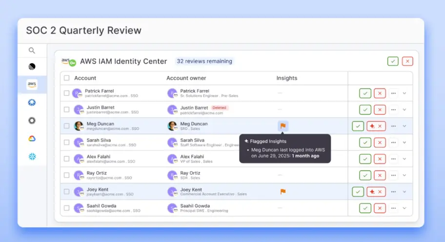 - Built-in compliance support: The platform supports the most relevant frameworks like SOC 2, ISO 27001, and HIPAA. Access reviews run on schedule, evidence collects automatically, and audit reports are ready with a single click.