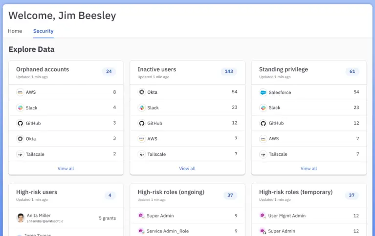 - Unified Identity Graph for centralized access data: Get one source of truth for all identity and access data across cloud, on-prem, and SaaS systems. When someone asks what a vendor can access, the answer is one search away.