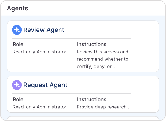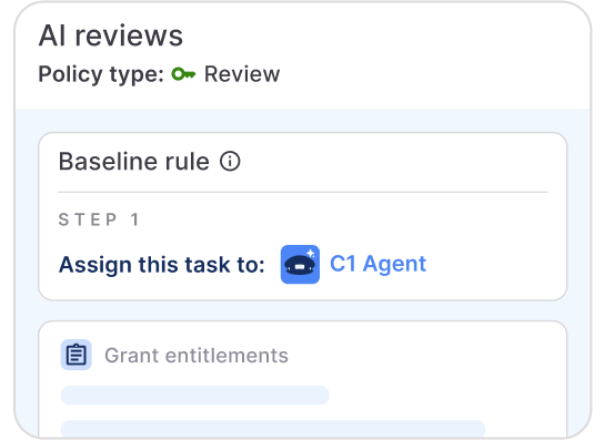 Create flexible policies and custom AI agents that automate context- and risk-aware access approvals and provisioning.